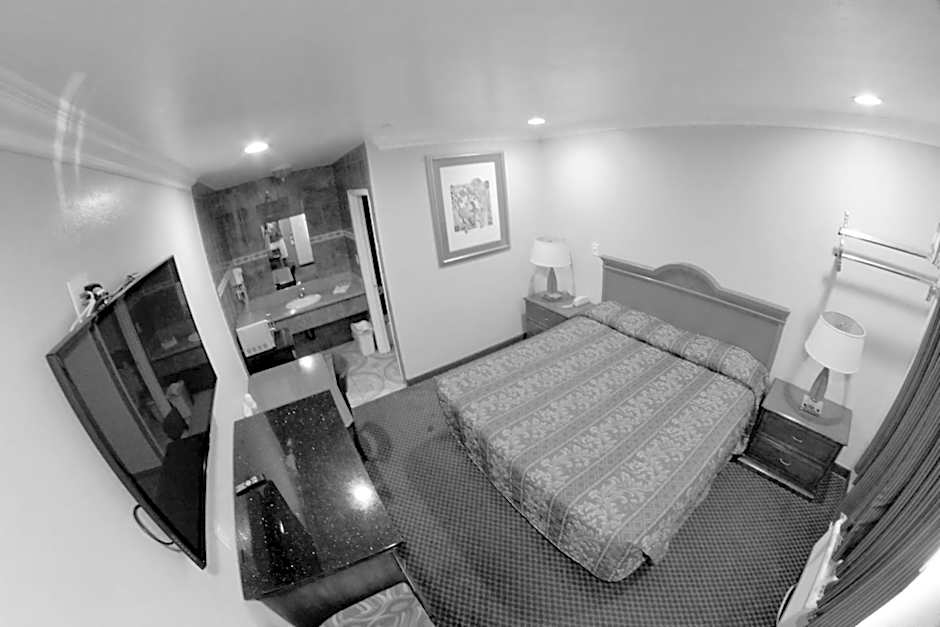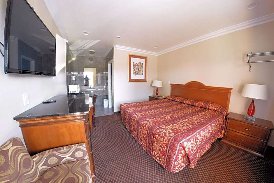 This King room has air conditioning, a flat-screen TV with cable, and a fully-equipped kitchen including a microwave.